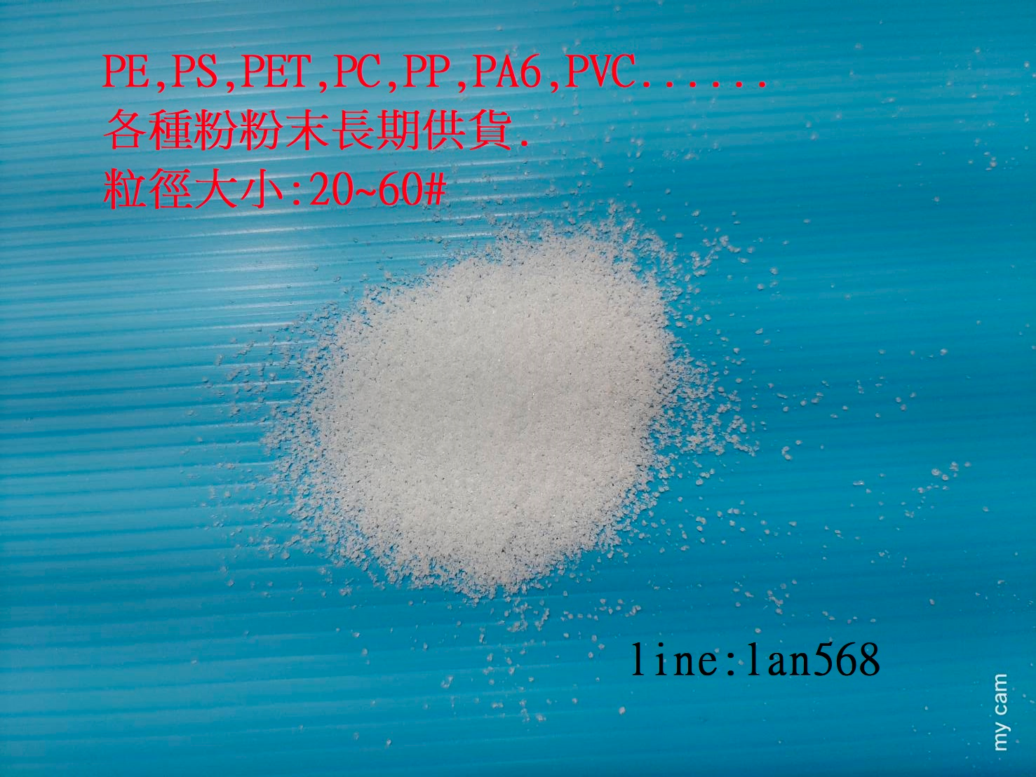 PS,PET,PE,PP,PC,PA6細粉,微粉,粉末,粉料,塑膠粉 粒徑大小:20~60# 長期可供貨,歡迎洽詢!