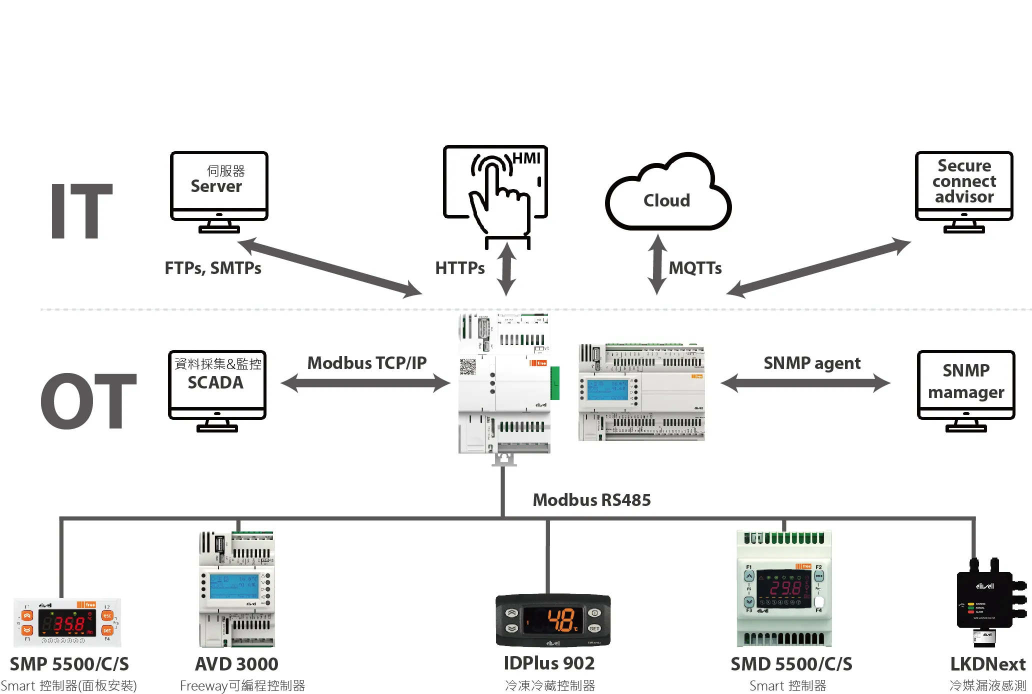 即用型、快速且簡單的解決方案,監控和遠程維護製冷系統最多可管理20台冷藏展示櫃或冷藏室 200個控制器透過HACCP 報告自動化