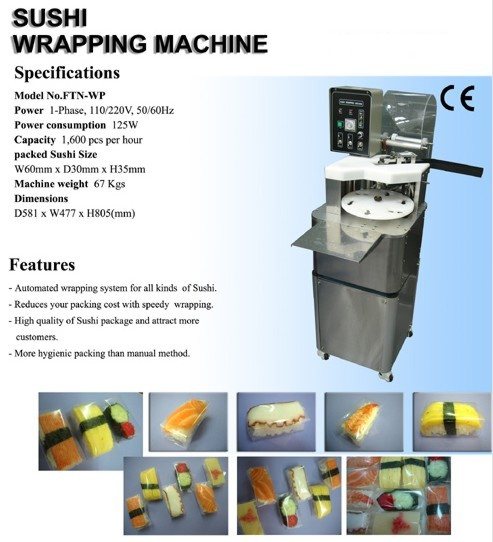可以包裝16~22公克等,不同重量的壽司可以在包裝紙上印製客戶獨特的商標(選配),有不鏽鋼與鋁合金兩者材質可選擇