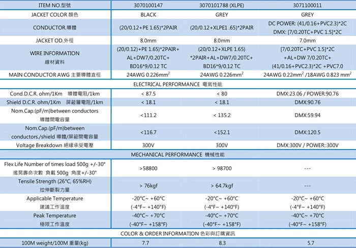 DMX & AES / EBU CABLE◎ ITEM NO.: 3070100111 / 3070101758